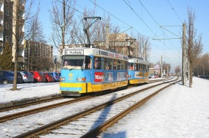 Tw 531+532 überquert bei wolkenlosen, blauen Himmel gerade den Südring. Seit Sonnenaufgang herrschte heute richtig tolles Winterwetter mit Sonne pur. |