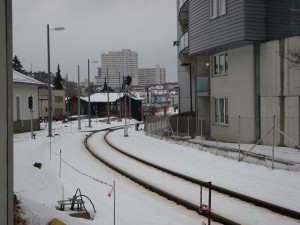 Talstation und Zug der Mühlkreisbahn |