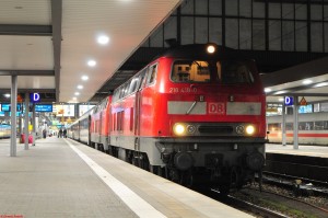 Bei diesem IC fehlten leider so viele Wagen, dass er letztendlich nur aus vier (!) Wagen bestand. Die Doppeltraktion 218 hatte es also gar nicht soo schwer. |